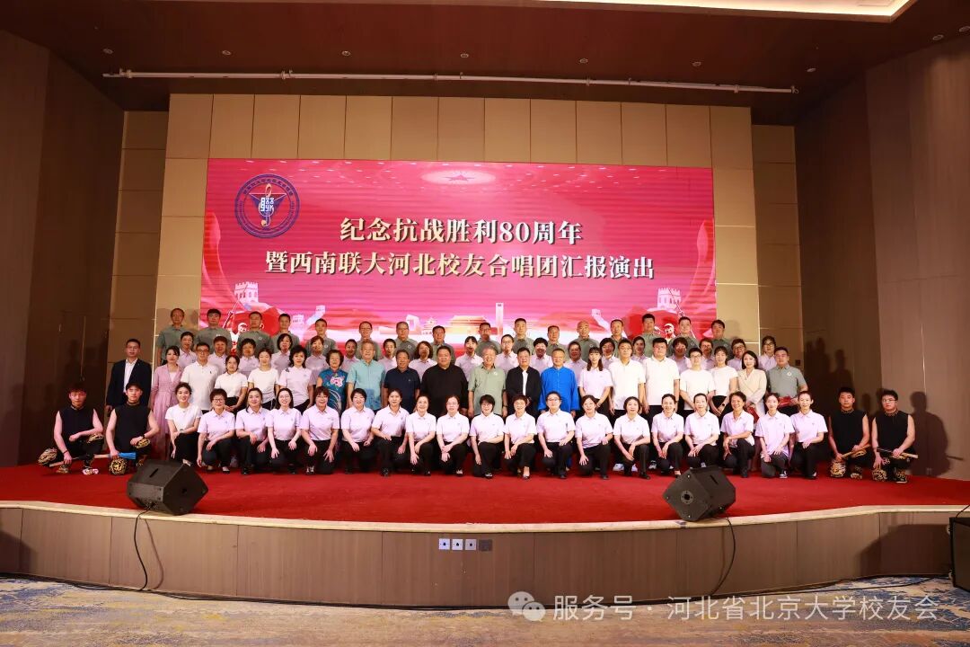 8月31日,北京大学、清华大学、南开大学三校河北校友合唱团在石家庄联合举办纪念中国人民抗日战争暨世界反法西斯战争胜利80周年汇报演出。三校校友及各界嘉宾230余人齐聚一堂,通过重温红色歌曲,铭记抗战历史,赓续西南联大精神。