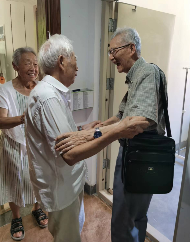 2022年8月10日,抗战胜利纪念日前夕,大连市北京大学校友联谊会会长郭世涛、副会长唐开、秘书长李雪梅一行十余人来到旅顺乐椿轩国家级养老示范基地,看望参加过青年远征军的西南联大校友张义燊学长。8月13日是张义燊学长的百岁生日。校友们祝贺张老百岁寿辰,向抗战时期为民族独立、民族解放舍生忘死的老前辈致敬。