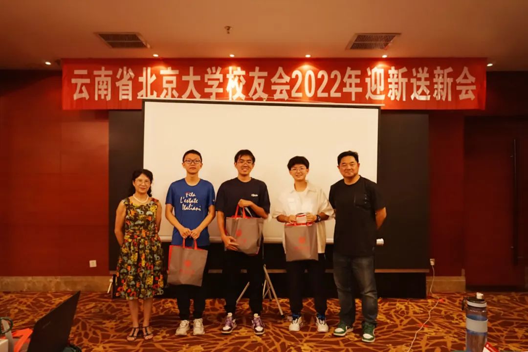 云南北大校友会常务副会长张晓章、副会长李建美向新生代表赠送了北大纪念品。