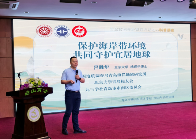 2024年10月18日,北京大学青岛校友会赴青岛市崂山区育才学校组织开展“北京大学青岛校友会科普教育基地”揭牌活动,并围绕第35个国际减灾日“赋能年轻一代、共筑韧性未来”主题开展科普教育讲座。