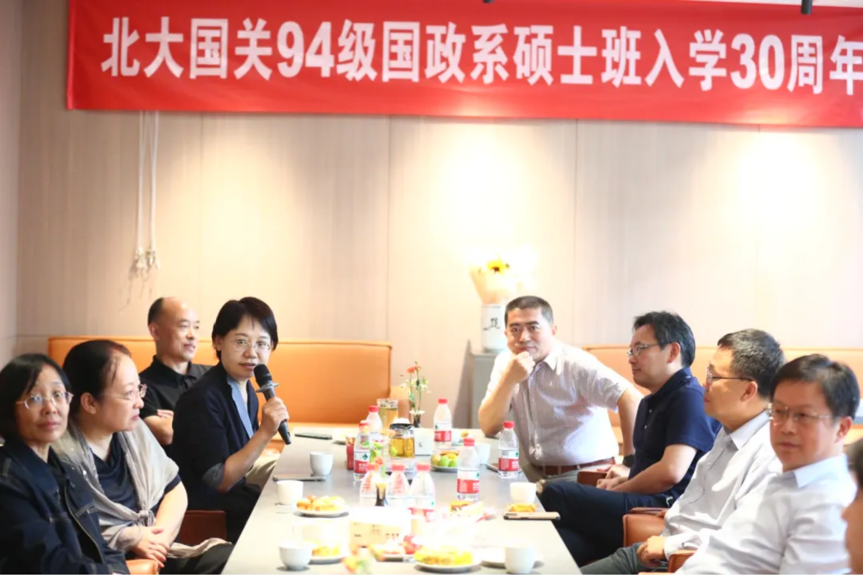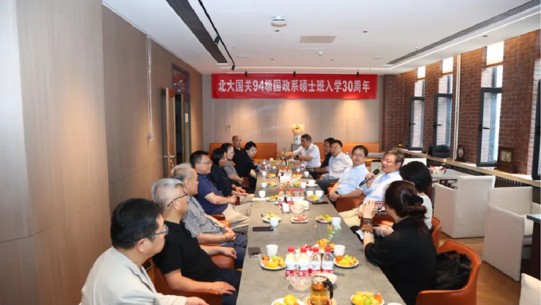 2024年9月8日,北京大学国际关系学院1994级硕士班入学30周年及国政系建系60周年返校活动在学院博诚咖啡厅举办。恰逢中秋前夕,大家一边品尝中秋月饼,一边共叙同窗情。活动由国际关系学院教授94级硕士班班长于铁军主持。学院院长唐士其、院友办副主任金瑞参加了此次活动。