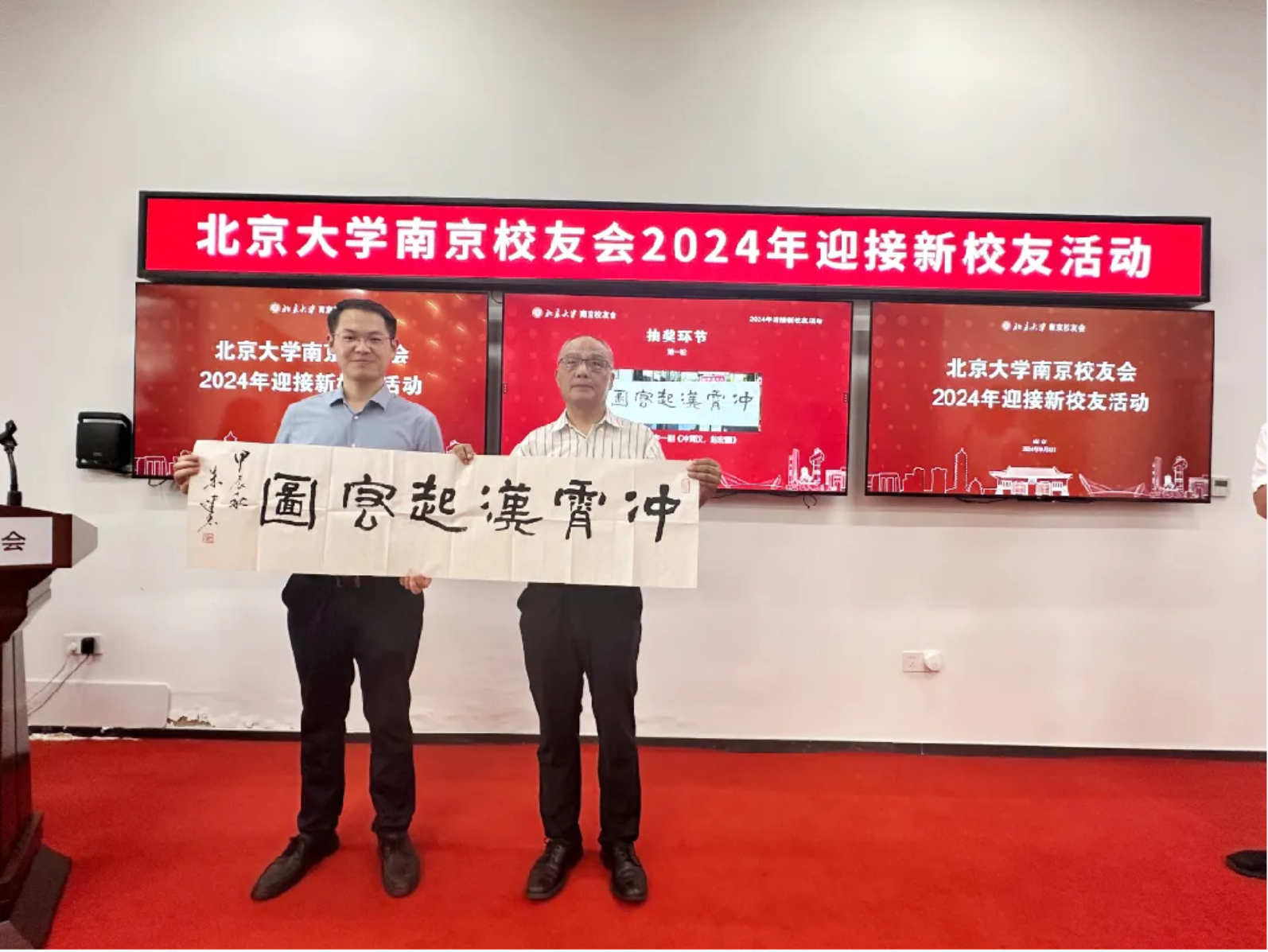 抽奖环节中,北京大学南京校友会总能得到各位校友及热心人士的大力支持,本次的抽奖奖品,对年轻的校友们来说,惊喜万分——有北京大学南京校友会书画协会会长朱建军老师的题字“冲霄汉,起宏圖”,有价值千元以上的钛金属焖泡杯、黑茶、黄精、紫水晶等,还有北创营赞助的“新青年”套装。