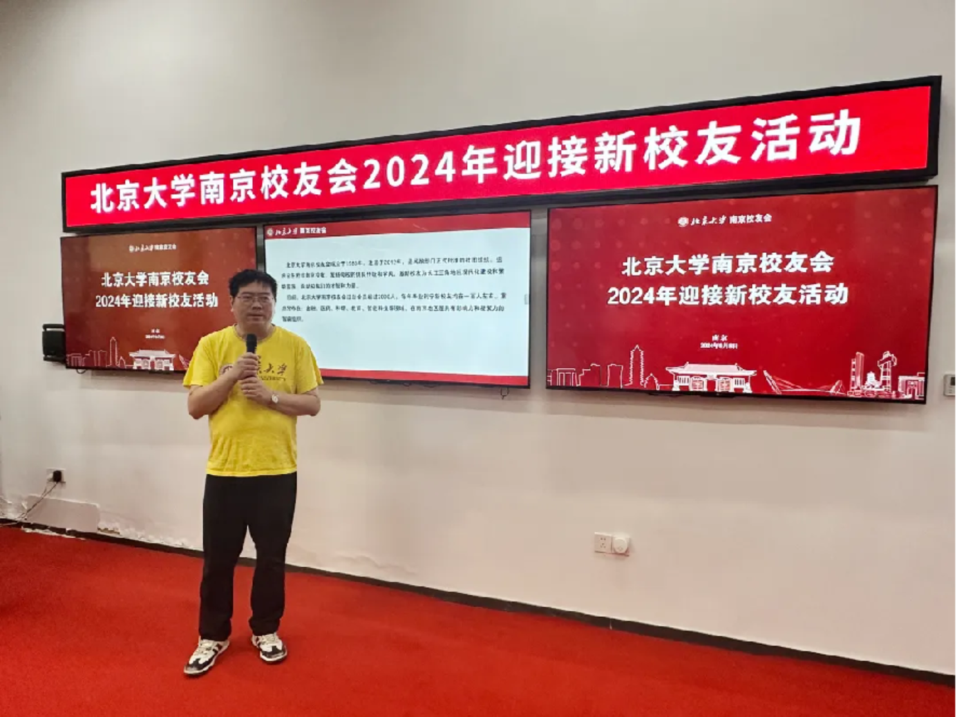 北京大学南京校友会副会长兼秘书长王炜向新校友们介绍了北大南京校友会的基本情况,回顾了校友会这些年来的发展历程,并对新校友的加入表示热烈欢迎和殷切期望。他鼓励新校友们积极参与校友会活动,共同为校友会的发展贡献力量。
