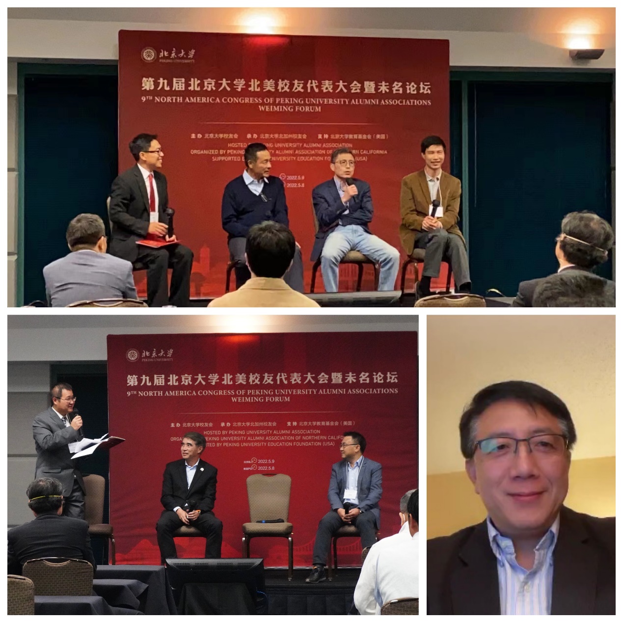 5月9日未名论坛采取线上与线下相结合的方式举行,北京、旧金山两地设线下会场,校内学者、校友代表聚焦科技、人文、生命科学、半导体等前沿领域和热点话题进行分享与探讨,来自北美地区及全球各地的300余名校友代表参会。论坛由北京大学校友会副会长兼秘书长、校友工作办公室主任李文胜主持。