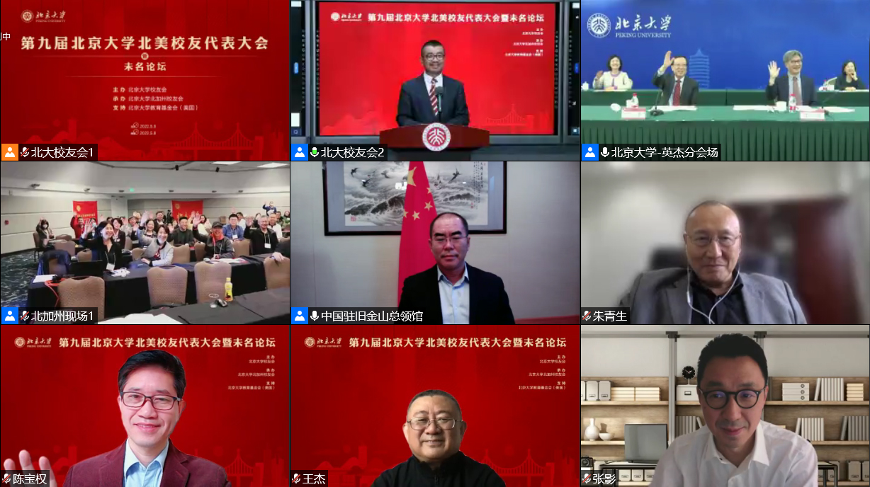 为凝聚北美校友力量、交流海外校友工作经验、推进校友工作发展、助力新时代母校建设,北京时间2022年5月8日-9日,第九届北京大学北美校友代表大会举行。北京大学校长郝平,中国驻旧金山总领事馆代总领事潘庆江,副校长、校友会常务副会长王博,原副校长、校友会常务副会长王杰等出席大会。