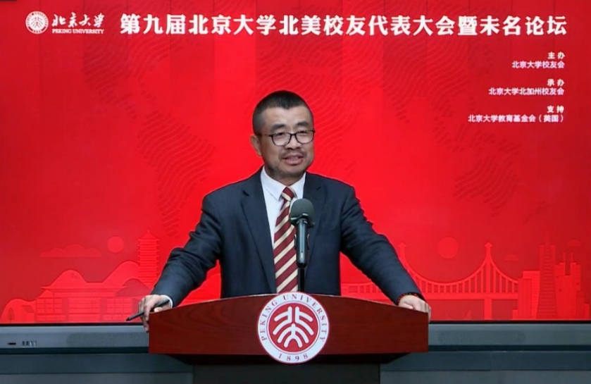 北京大学北加州校友会联席会长周新建代表论坛承办方北加州校友会致辞。他向出席本次论坛的领导、嘉宾表示诚挚感谢,并表示此次大会克服诸多困难,最终促成中、美、加三地校友“云端”相聚,充分体现了北大人的凝聚力。他坚信北美校友工作必将顺势而为、蓄势而发,不断加深北美校友和母校的联结。