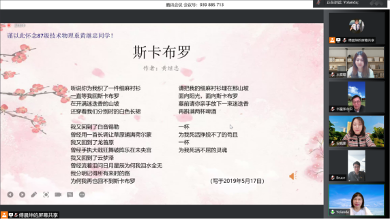 各位校友以真挚的情感朗读了各类文人诗集,有叙利亚诗人阿多尼斯的《我的孤独是一座花园》、徐志摩的经典诗篇《再别康桥》,更有海外学子Markus相隔千里,带来著名诗篇《面朝大海 春暖花开》。刚果留学生普巴(Elmeruche)用法语为大家带来诗人保尔·艾吕雅在二战期间写就的著名诗篇《自由》。