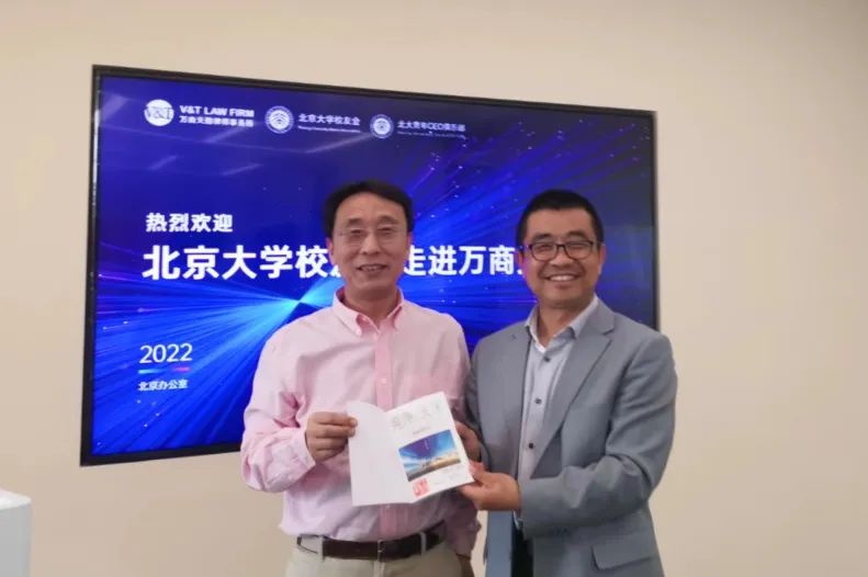 2022年4月21日,北京大学校友会副会长兼秘书长、校友工作办公室主任李文胜,常务副秘书长、校友工作办公室副主任张向英携北大校友代表一行,赴万商天勤北京办公室参观交流,共话发展。万商天勤律师事务所主任李宏律师出席接待,万商天勤律师事务所北京办公室执委会主任张晓峰律师主持会议。