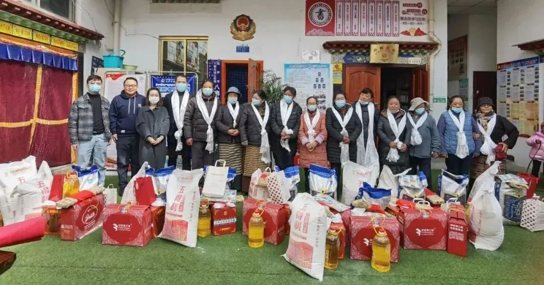 在藏历水虎年新年来临之际,在拉萨市城关区北京援藏领导的支持下,西藏校友会联合西藏北京商会、西藏地球第三极产业发展有限公司等为社区困难群众送上节日的祝福,献上吉祥的哈达,捐赠大米、面粉、食用油、牛肉、面包、砖茶、保温杯、酥油茶壶、新年文创等慰问品,总价值近五万元。