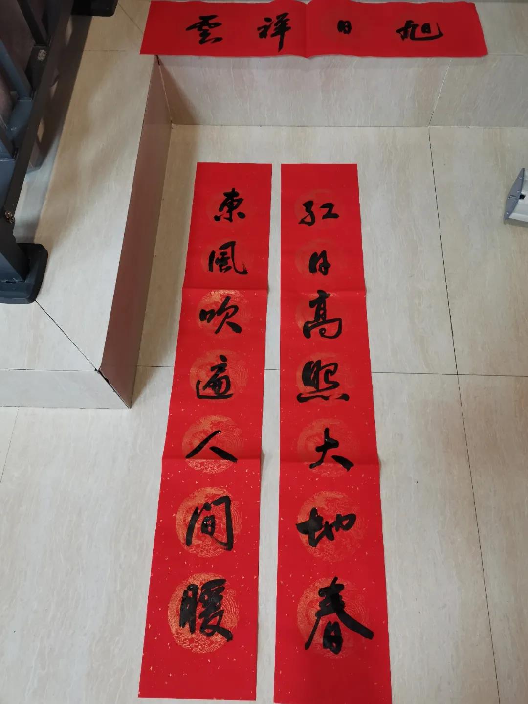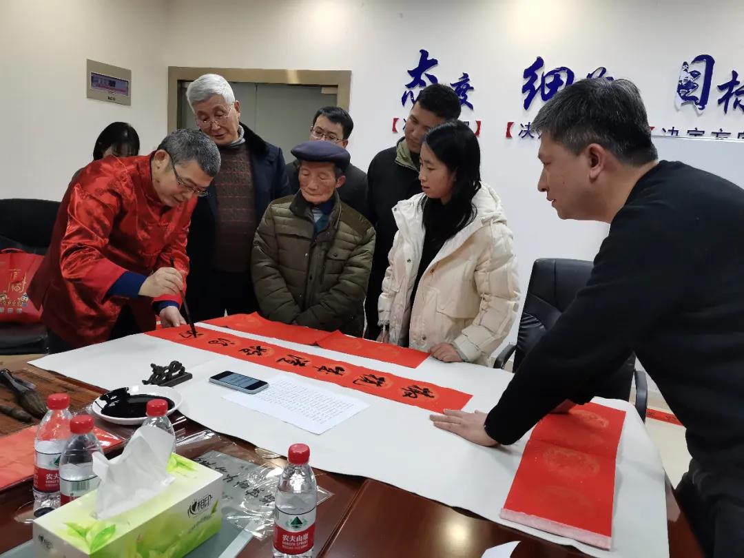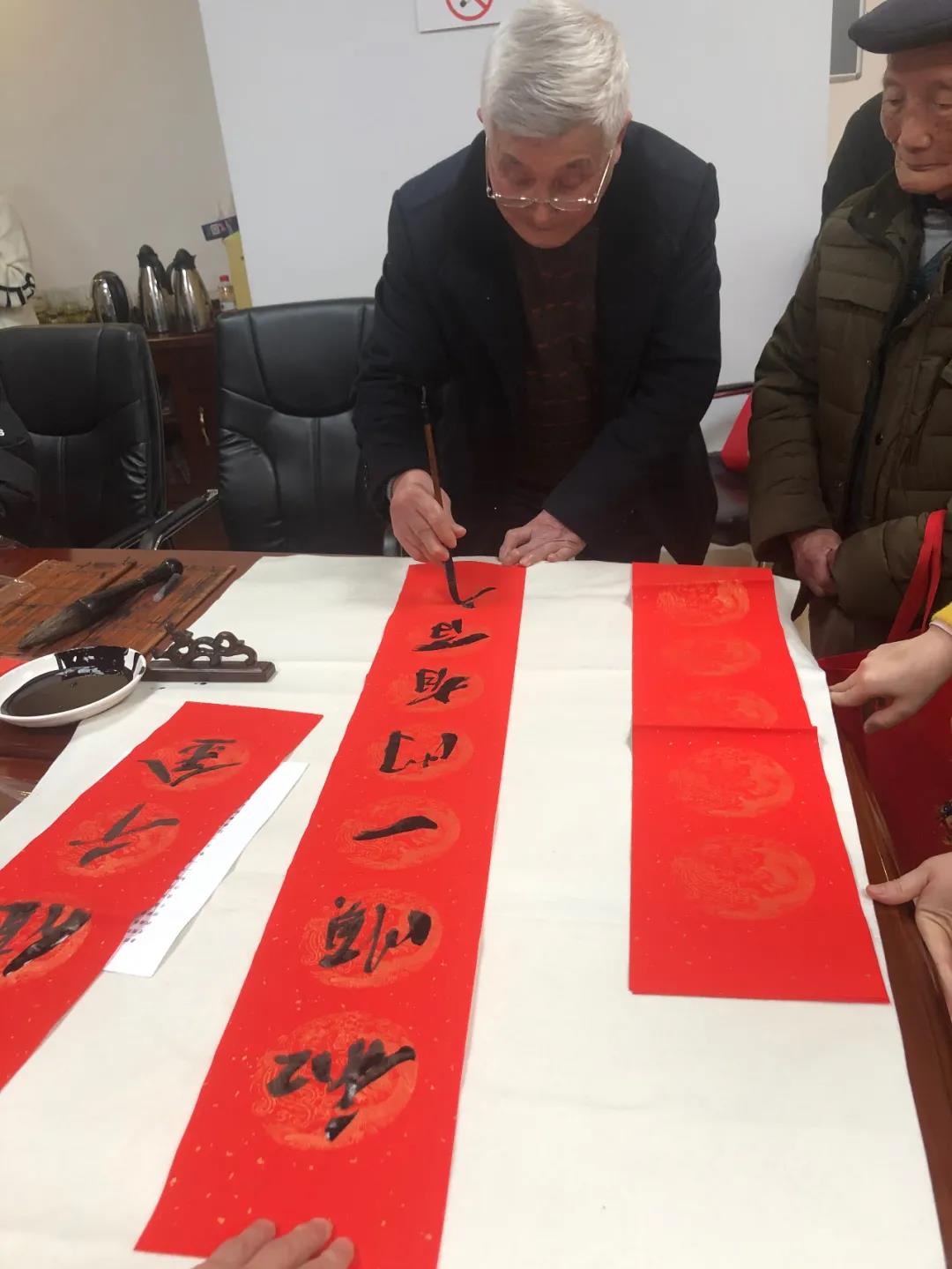 在自由交流环节,刘扬平现场挥毫泼墨,为大家书写新春对联。“九天日月回春意,十亿神州溢彩霞”“东风吹遍人间暖,红日高照大地春”“迎新春江山锦绣,辞旧岁事业辉煌”……一副副喜庆的对联,寄托着人们对新一年的美好依托。95岁高龄的校友安宁一边欣赏书法,一边和刘扬平交流,他表示自己很喜欢扬平校友的书法,感谢贵州校友会举办的这次活动,让校友们感受到了书法的魅力和扬平校友的风采。大家在活动现场一起讨论、交流,分享对春联的感受和体会,以及对未来的思索和想法。顾本江校友也现场挥笔写对联,表达对新一年的美好憧憬。现场校友及家属受到氛围的渲染,纷纷参与到了书写对联的活动中,真是好一派其乐融融、济济一堂的景象!