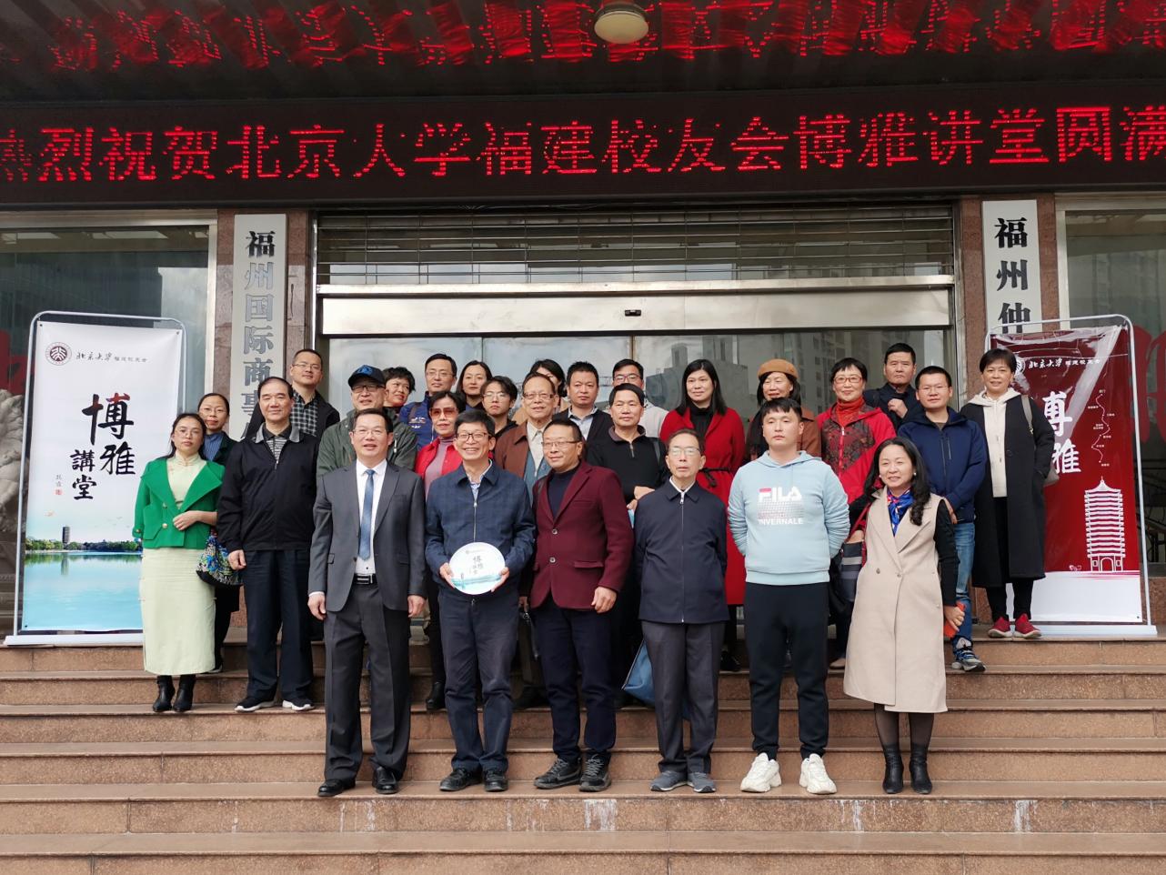 北京大学福建校友会会长卢美松、副会长童建炫代表校友会向楼建龙赠送了博雅讲堂纪念品。