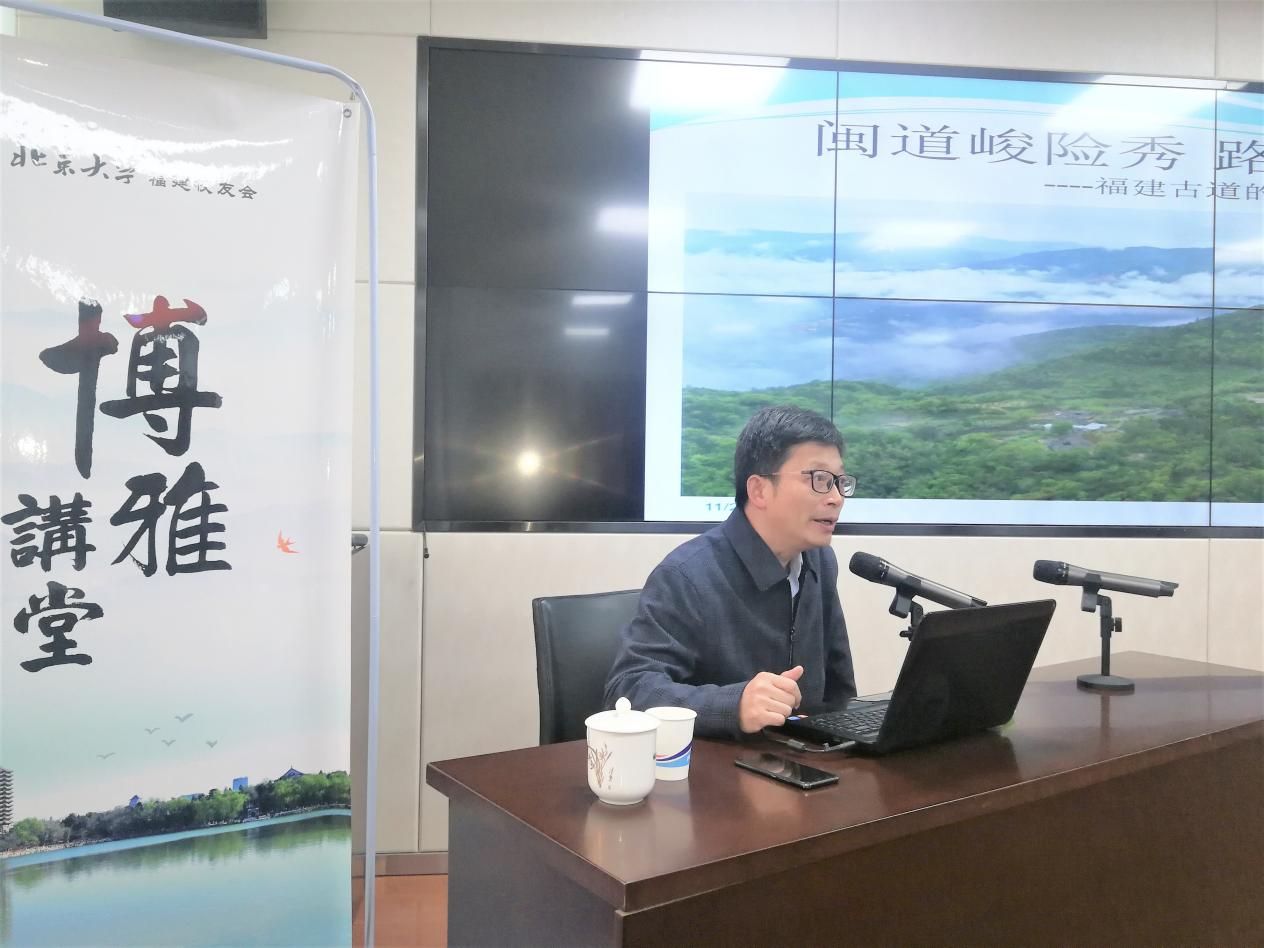 11月27日,福建博物院副院长兼福建闽越王城博物馆馆长楼建龙,从福建古代驿道的区系与类型入手,结合自己多年来的田野考察经验,和校友们分享了他对福建古驿道的深入思考与独到见解。