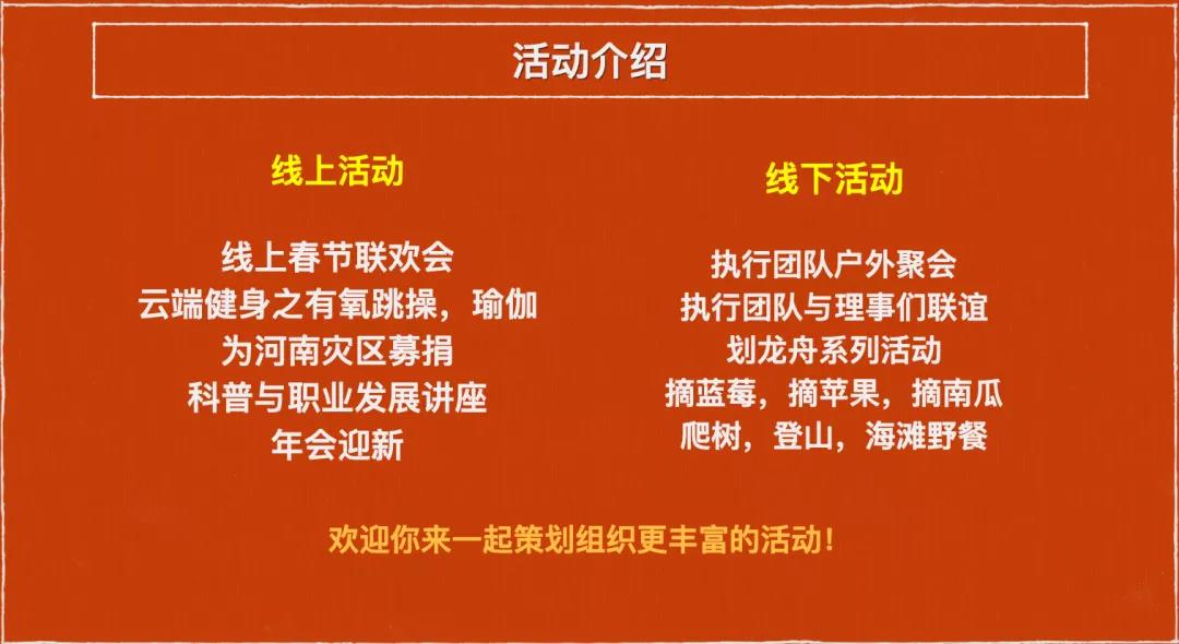 分组活动结束之后,北京大学新英格兰校友会会长彭竞宇(2010级生科博士校友)代表理事会及本届执行团队,向与会的新老校友表示了热烈地欢迎。他详细地介绍了近一年来校友会开展的各项线上线下活动,包括各类讲座、户外活动、疫情期间的口罩发放、支援国内赈灾捐款捐物等等。
