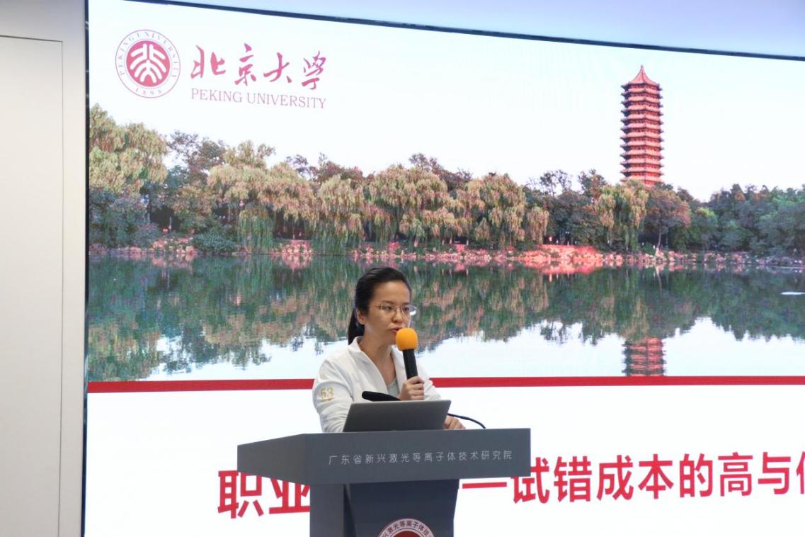 第一场由陈云霞作“从零到一,一到一百,知识链对接产业链”的主题分享,讲述了广东省新兴激光等离子体技术研究院的发展史和千亿级小目标。陈云霞表示,现在是科技驱动创新的时代,核科学领域实现“从零到一,一到一百”的产业化,需要聚集更多的力量,以及各行各业校友的支持。她同时指出,广州科技前景越来越好,祝愿新校友在广州舒心工作,安心生活,大展宏图。