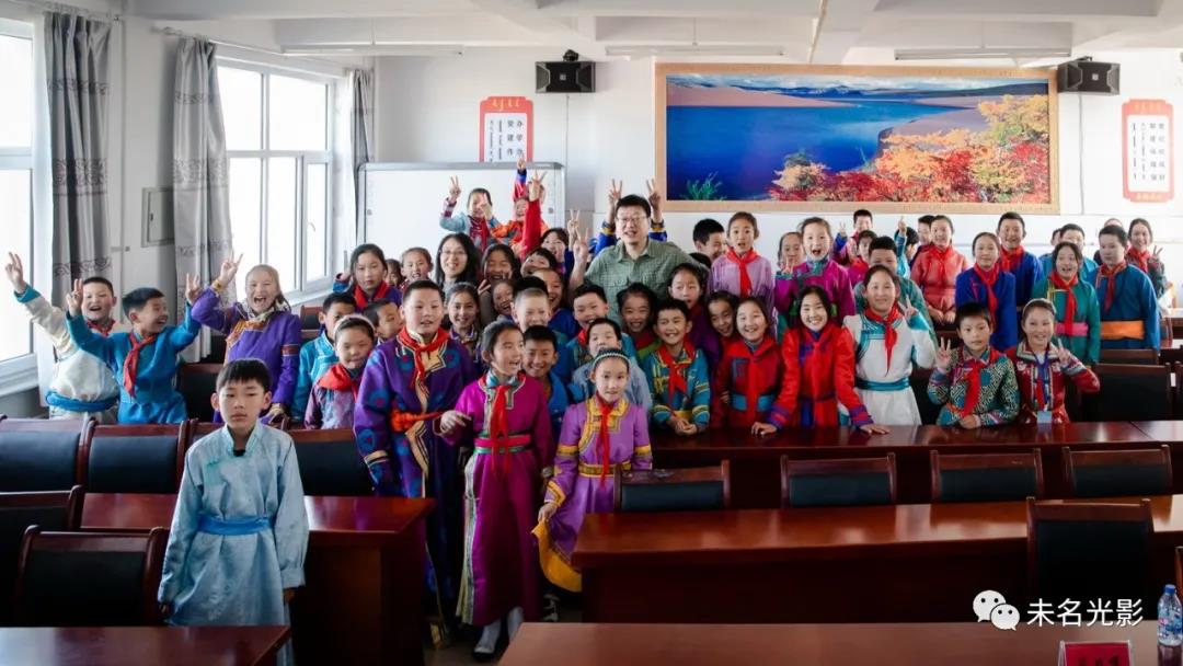 简短的捐赠仪式结束后,学校在多功能厅为参加此次公益活动的北大校友摄影俱乐部成员举办了欢迎演出。小学生和幼儿园的小朋友们盛装上台,表演了十几个极富蒙古族特色的歌舞、诗朗诵、小合唱等节目。
