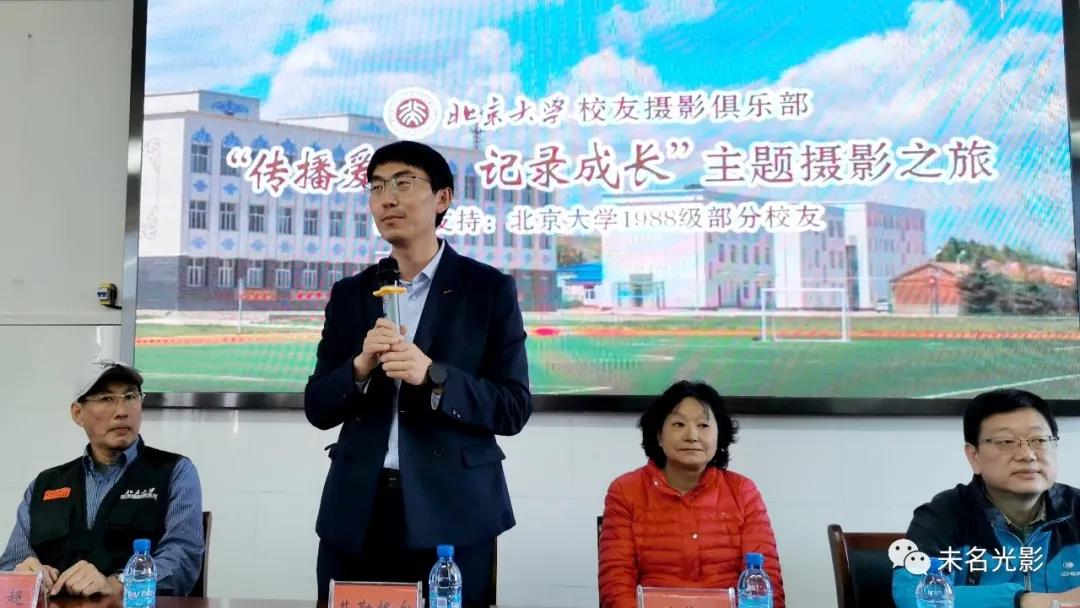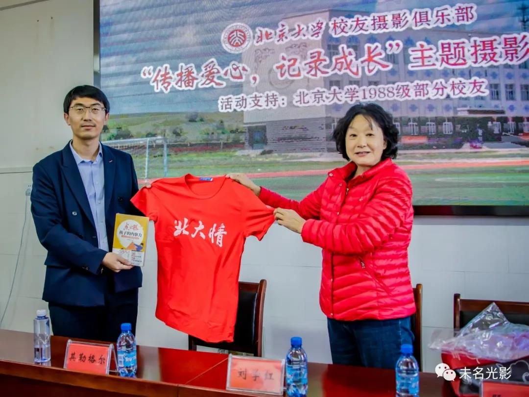 摄影俱乐部会长刘学红对热情支持此次活动的达来诺日镇政府和民族实验小学的师生表示感谢,并向镇政府赠送了10件印有“北大情”三个字的纪念T恤。