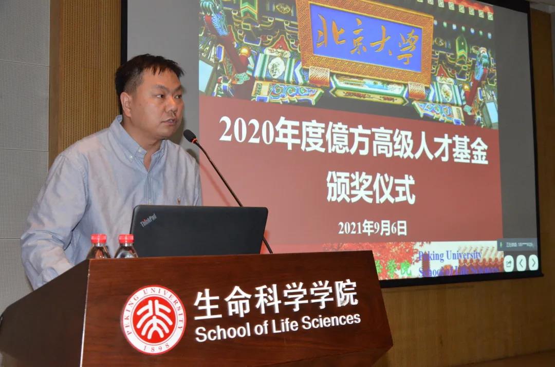 9月6日,在北京大学生命科学学院2021年度学术周开幕式上,由学院校友捐赠的億方高级人才基金2020年度评奖结果正式发布,北大生科新晋入职的4名科学家凭借各自的学术进展,喜获北大生科億方高级人才基金评选的“2020年度億方荣誉称号”。其中,于翔蝉联“億方讲席教授”,郭强、刘君、CARLOS IBÁÑEZ获颁“億方学者”。颁奖仪式由学院高宁副院长主持,刘君代表本次获奖人发言,表达了对于学院和基金捐赠人的由衷感谢及此番获奖的惊喜激动之情。