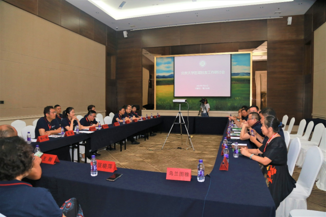 7月24日,北京大学第三次区域校友工作研讨会在内蒙古鄂尔多斯召开。来自10余家海内外校友会及院系校友组织的22位校友工作者就“迎新送新”工作开展专题交流。北京大学城市与环境学院李双成教授、国家发展研究院校友部主任程军慧、城市与环境学院综合行政办公室葛强等出席会议。本次会议由校友会副秘书长、校友工作办公室副主任李存峰主持。