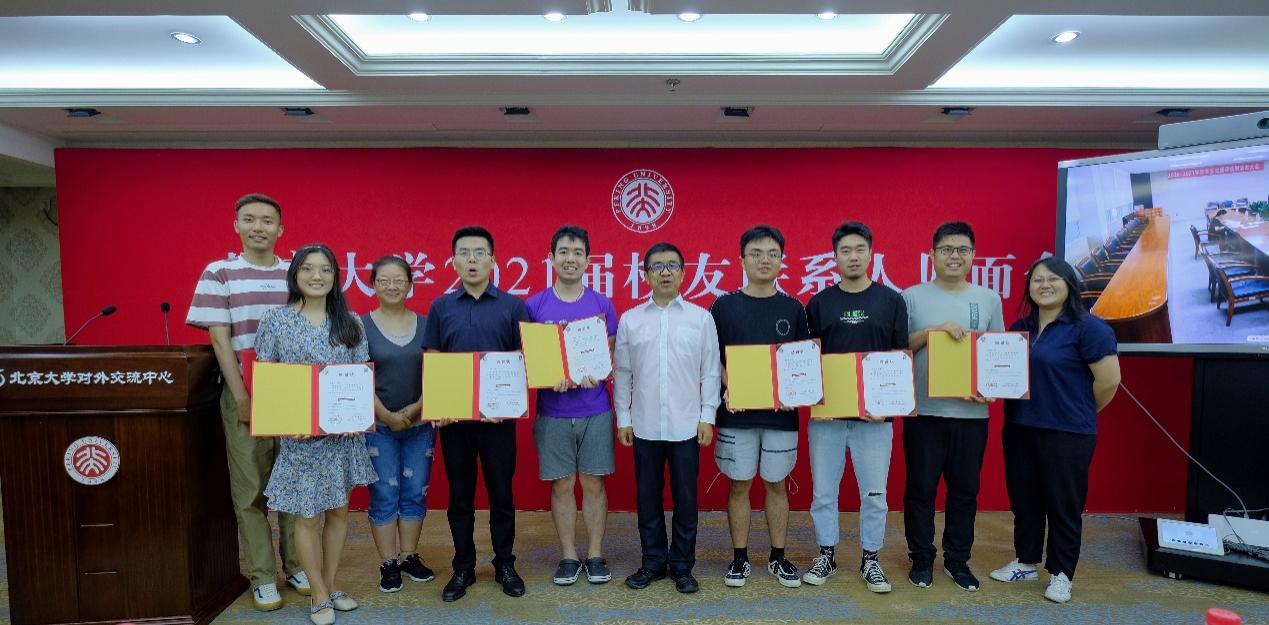 李文胜、杨筱东、王艳超共同为现场的37位2021届毕业生校友联系人颁发感谢证书,希望今后共同努力做好校友工作,让北大人的联系更加紧密。
