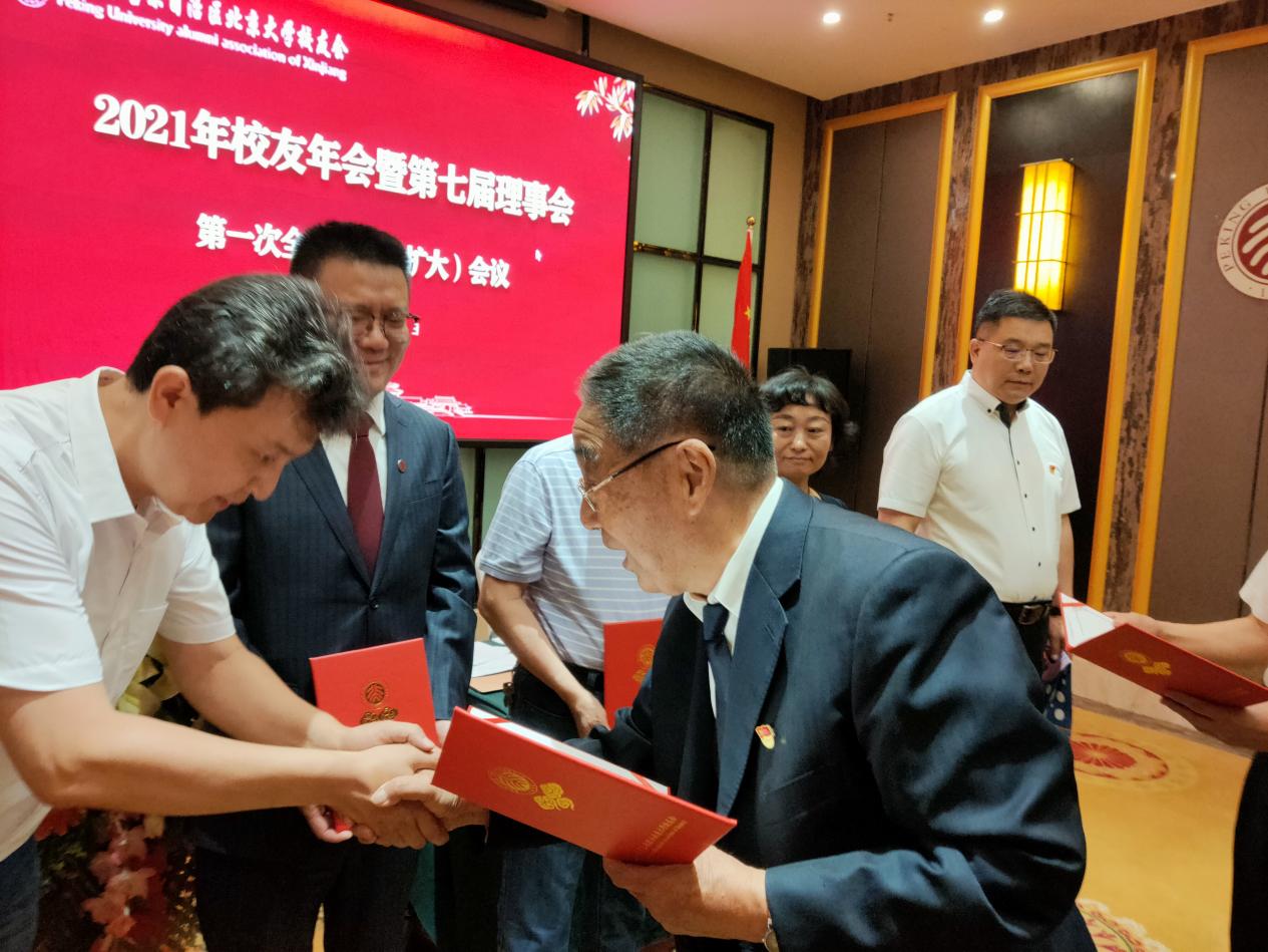 会议在国歌声中开幕。第一部分表彰在2018-2020年度为校友工作做出突出贡献的优秀个人与优秀集体。张法林、张松、岩灵、李振法、许华等十人获得优秀校友工作者荣誉称号,王辉、于建文等五人获得校友工作贡献奖,联络部、医学部两个部门,老年分会一个分会及石河子、克拉玛依、伊犁三个地州获得优秀校友组织奖。为李振法、许华等76人颁发第二批脱贫攻坚贡献奖,为张兴华、王伟等35人颁发第三批脱贫攻坚贡献奖。为张法林、董虎臣等6人授予扎根新疆50年贡献奖。为尚游、刘国民赠送60岁生日纪念摆件。此外,给2019年度被北京大学校友会表彰的校友,2020年在抗疫过程中被北京大学、北京大学校友会、北京大学医学部表彰的突出个人通报表扬或颁发证书。