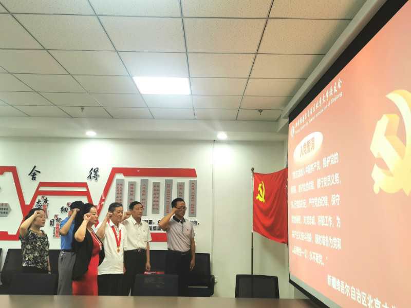 2021年7月1日,新疆北京大学校友会党支部在观看完北京庆祝建党百年大会电视转播后,赴连云港大厦举行专题党日活动,庆祝中国共产党百年华诞。党支部书记、第七届理事会常务理事、副会长张兴华同志主持会议。第七届理事会会长闫科培同志,老党员代表张野、李锺禄同志,年轻校友段婷婷同志,本支部预备期内新党员罗英同志参加会议。