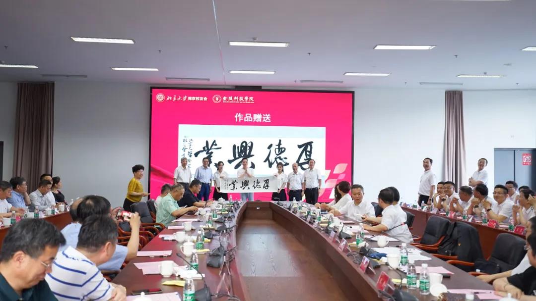 金陵科技学院党委书记陈小虎表示,中国的新兴崛起需要一批新兴大学,金陵科技学院在全国率先提出扎根所在城市办新兴应用型大学的办学定位,坚持实施"南京化战略" "网络化战略"。北大校友会给予学校的支持,将推动学校在更高质量更高水平上加快发展。