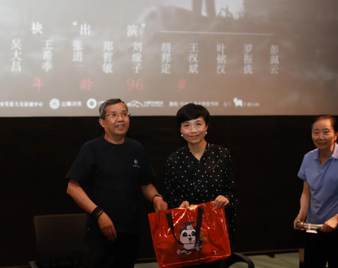 马老的亲人们带着马老的嘱托,现场送上马老的题字,感谢校友会精心的组织安排。四川省北京大学校友会为徐蓓导演赠送北京大学文化衫、马识途先生与许渊冲先生的采访书籍。