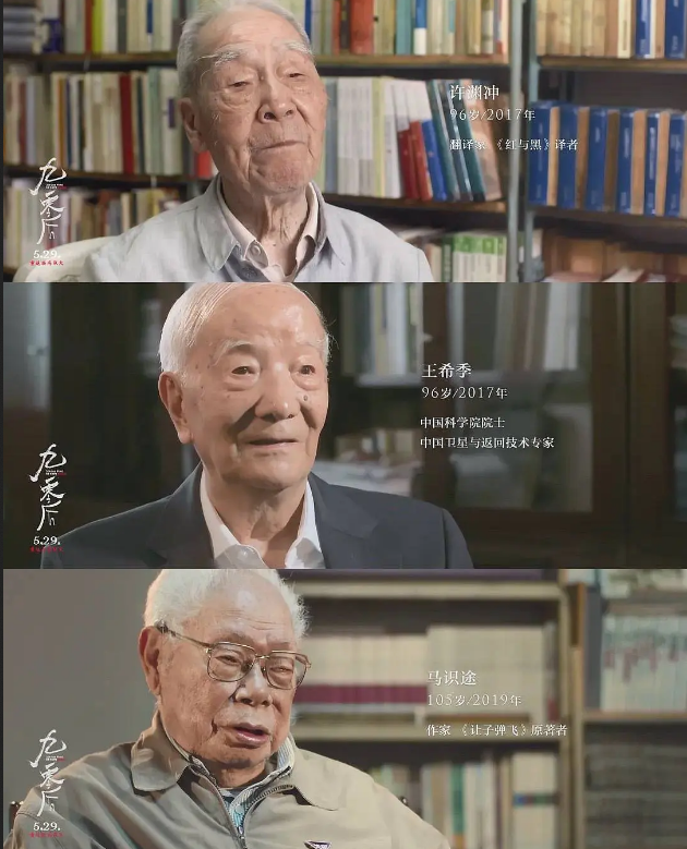 电影中的这群“九零后”包括98岁的诺贝尔物理学奖获得者杨振宁,99岁的“两弹一星”功勋奖章获得者王希季,100岁中国翻译文化终身成就奖获得者许渊冲,101岁的《呼啸山庄》译者、翻译家杨苡,106岁的《让子弹飞》原著者、作家马识途,93岁中国科学院院士潘际銮等等。他们还有一个共同的身份:西南联大学生。