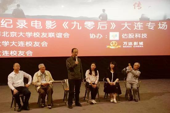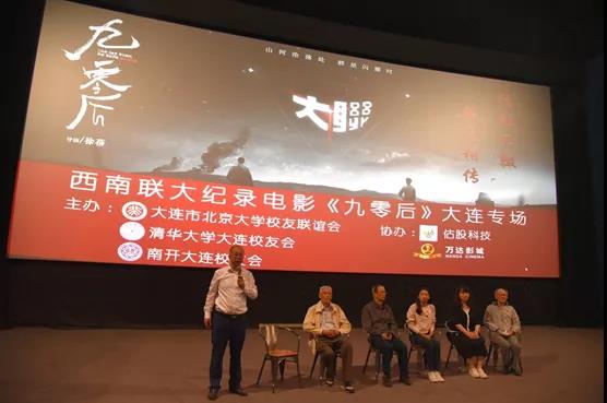 观看电影前在影厅举行了观影仪式,仪式由北大大连校友会郭世涛会长主持。前台就坐的嘉宾有95岁的中科院大连化物所原副所长陈庆道学长,西南联大二代、大连理工大学退休教授郑斯宁学长,清华大学大连校友会的韩冰副秘书长,北京大学经济学院校友服务中心的陈稳老师,西南联大陈岱孙先生的侄子、大连海事大学陈俅教授。