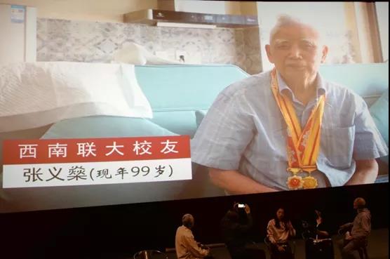 原计划邀请99岁的西南联大校友、大连理工大学离休的张义燊老师来影城与大家见面并观看电影,因为6月1日张老师和老伴刚搬到旅顺的乐春轩养老院,出行不便,所以世涛会长看望张老师的时候,录了一段张老师的讲话视频,在现场分享给大家。张老师讲述自己1943年考入西南联大法律专业,1945年响应“十万青年十万军”的号召参加青年远征军到印度,在印度的中国远征军训练基地学习汽车驾驶技术后回国,抗战胜利以后回学校复学,1946年联大解散后回到北大,转系进入数学系学习,1949年毕业来到大连工作。张老师说非常高兴世涛会长和邹春苓老师等诸位校友来看他,大家也为身边就有“九零后”的西南联大的校友而振奋,视频观看结束,大家以掌声表达对张老师和老伴的祝福,祝愿他们健康长寿。