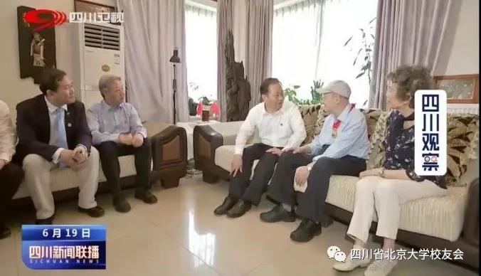 刘盛纲同志是中国科学院院士、原电子科技大学校长,已有67年党龄。在回忆矢志不渝跟党走、一生心血献给党的难忘经历时,刘老表示将永葆初心使命、弘扬优良传统,发扬“老骥伏枥、志在千里”的精神,竭尽所能继续为四川现代化建设发光发热,见证初心与使命。在与刘磊(刘老之子,现任北京大学四川校友会监事长)交谈中,彭清华书记特意询问在川校友相关情况,听取刘磊校友介绍北京大学四川校友会近年来的发展情况,并两次叮嘱刘磊,要代他向四川的北大校友们问好