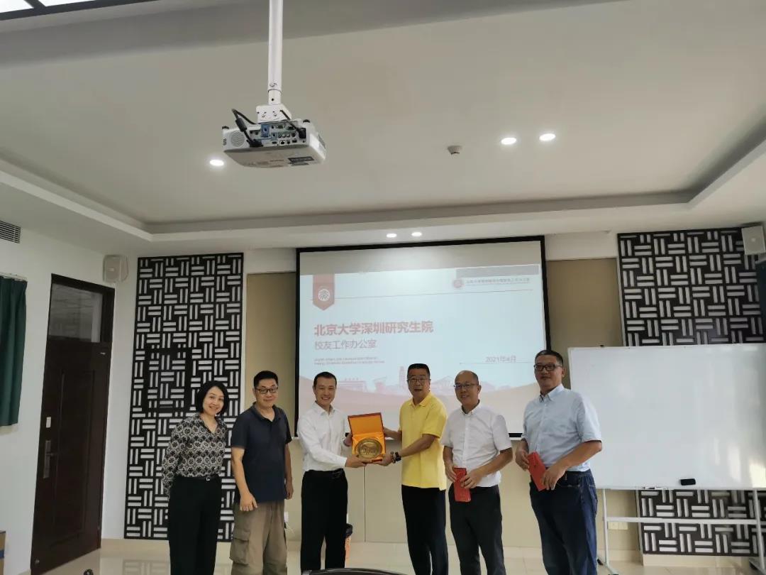 在走访交流中,戚国伟老师、人文社会科学学院执行院长于长江副教授和校友办主任赵柯禹老师向校友们介绍了北大深研院 20 年来的发展历程、办学成果、未来规划、基金会和校友服务工作,表示希望日后深研院能与粤港澳大湾区的校友们进一步加强联动,打造具有湾区特色的南方校友发展平台。