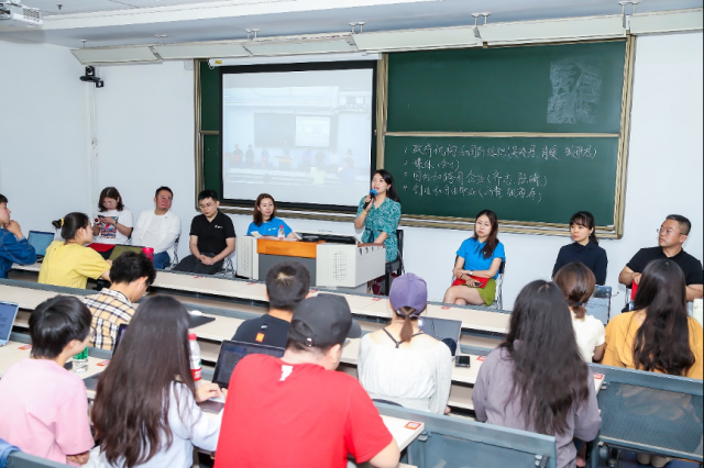 院友返校仪式结束后,部分院友代表前往国关楼C108教室,参加了职业分享沙龙。8位来自不同行业的院友与在校同学们进行座谈,向在校生同学讲述自己的职业规划和职业路径,并分享了自己的职业经验。