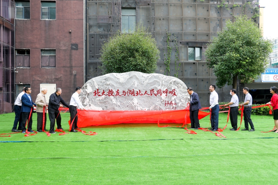 湖北省政府副秘书长陈家伟,北京大学校友会常务副会长王杰,北京大学校友会副会长兼秘书长、校友工作办公室主任李文胜,湖北省博物馆馆长、1987级校友方勤出席揭幕式。仪式现场, 94岁高龄的1953级校友朱传棨,1956级校友郑泽厚,1961级校友时永春、夏安享,1963级校友程康彦等湖北籍老校友也应邀出席,与200余位北大校友共同见证纪念石揭幕。