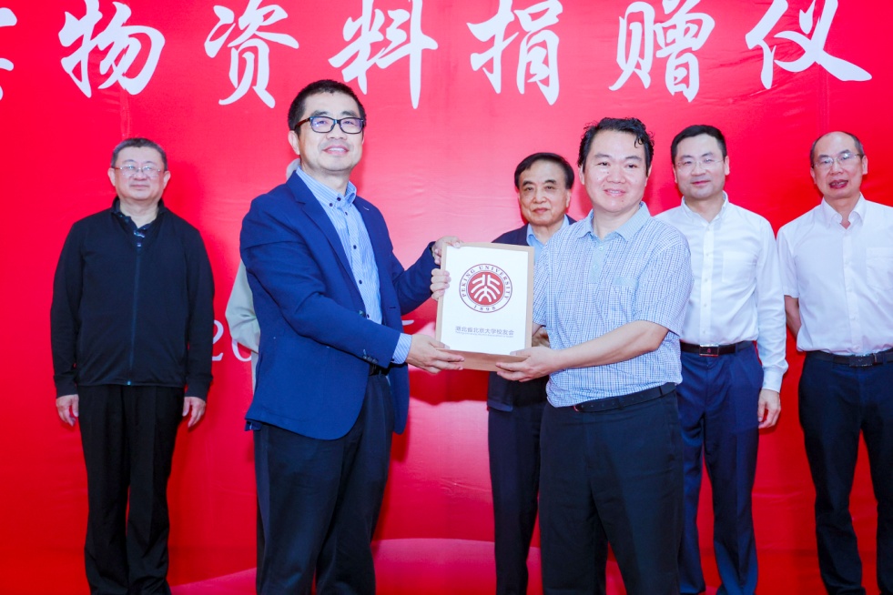 揭幕式结束后,北京大学校友会与湖北省博物馆共同举办北大校友“百万口罩行动”实物资料捐赠仪式。捐赠仪式上,王杰、李文胜、湖北省北京大学校友会会长刘萌代表北京大学校友会将42份北大校友抗击新冠肺炎疫情实物资料捐赠给湖北省博物馆。方勤作为馆方代表接收捐赠资料,并向北京大学校友会颁发捐赠证书。此次捐赠的实物资料中,包括湖北省多个地市州政府、红十字会及多家抗疫医院签发的抗疫物资接收函和感谢信等文件资料,记录了全球北大校友“百万口罩行动”的执行进程。
