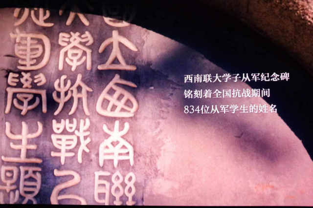 “没有足够的兵器,且拿我们的鲜血去!”这是牺牲的联大学子缪弘的诗句。在民族危亡之际,西南联大师生秉承“刚毅坚卓”校训,爱国热忱掀起从军高潮。抗战期间,西南联大先后出现过三次从军热潮,共有1100余学子携笔从戎,报名参军,其中镌刻在联大纪念碑上的有834人。“便一成三户,壮怀难折”,许多参军学子牺牲在了抗日的战场上,将青春和热血永远定格在了历史的丰碑上。