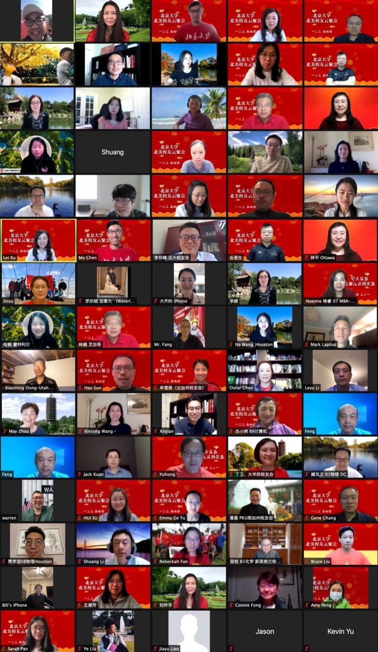 5月4日,由北京大学南加州校友会和华盛顿州校友会联合倡议,校友工作办公室与北美地区16个校友组织共同参与的北京大学北美校友云聚会活动在线上举办,各校友组织深入交流联谊,并热烈庆祝母校123周年生日。