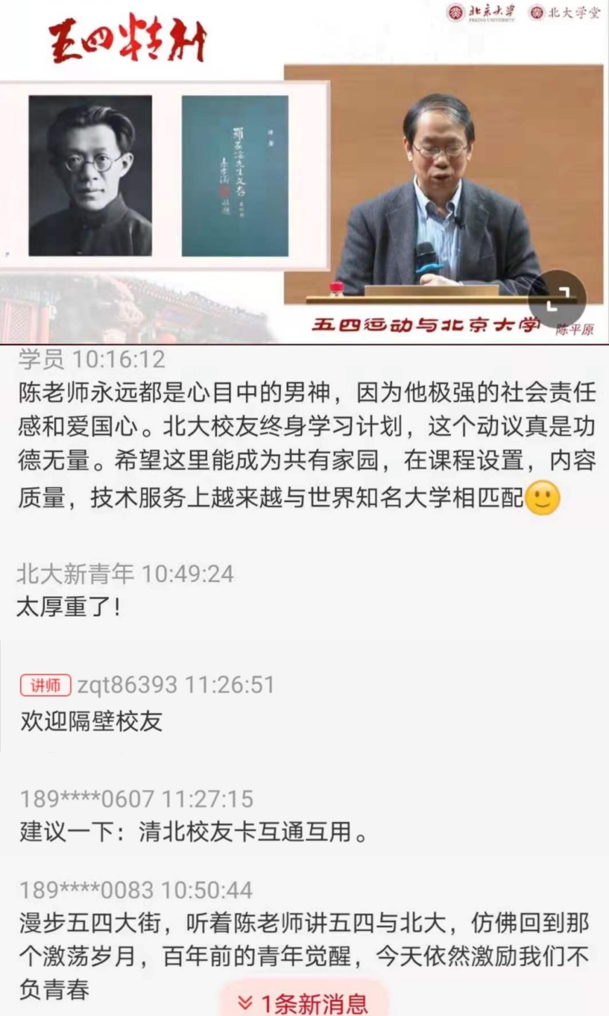 校庆日当天,北大“校友终身学习计划”正式启动。据统计,校庆日当天超过33万人次在校庆日聆听讲座,一代代北大人的少年意气与家国情怀借五四校庆日得以抒发。无论身处何处,校友们相约重返燕园课堂。