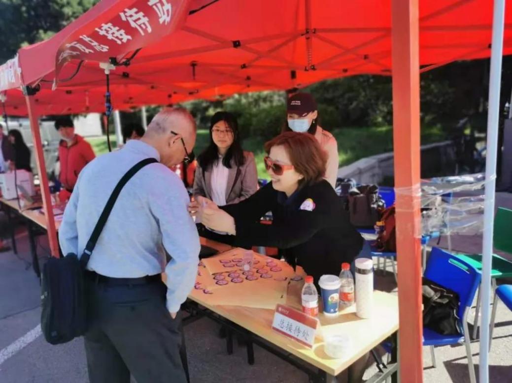 在校友接待站贴上校庆纪念臂贴,领取一份《北大人》杂志,以爱之名,完成“我爱母校”捐赠,办理一张北大人专属校友卡,返校之旅才算正式开启!