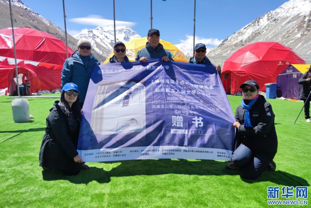 长篇小说《珠峰海螺》赠书活动近日在海拔5200米的珠峰登山大本营举行。在世界最高峰的见证下,小说作者黄怒波和出版方人民文学出版社共同向日喀则市、西藏登山协会、西藏圣山登山探险服务有限公司队员赠书。