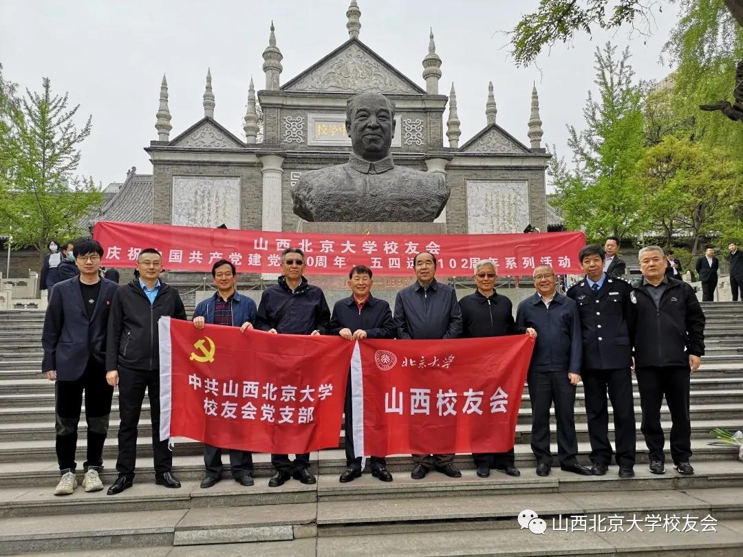 4月23日上午,山西北京大学校友会组织部分党员校友来到中共太原支部旧址彭真、高君宇纪念馆举行庆祝中国共产党建党100周年、五四运动102周年纪念活动,重温100年前那段激情燃烧的岁月,加深青年校友对五四运动历史意义和时代价值的认识。出席此次活动的有:山西校友会会长范晋生,副会长任健荣,副会长、党支部书记杜新中,常务理事刘国强,顾问赵新平,副书记梁东盛、副秘书长樊晓斌、周峰,校友王晋、王振山,山西省环保厅原总工关存先山等。