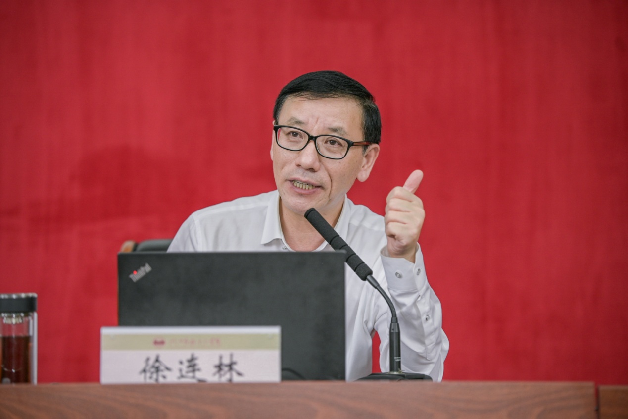 浙江红船干部学院副院长徐连林为大家讲授了一场史料丰富、精彩生动、激情洋溢的党史课程。徐连林娓娓述说百年中国共产党的建党历程,从红船由来追溯“红色根脉”,深度剖析了红船精神的历史内涵和时代价值。
