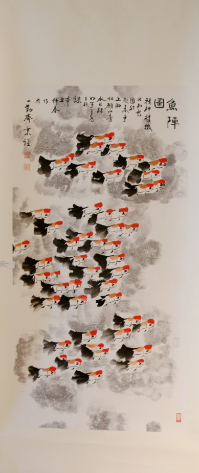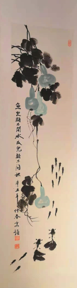 部队退休干部、63级哲学系贾瑞珍学长创作了两首七律《红船颂》,并将其中一首写成书法作品,撰写了一幅对联“大梦百年兴赤县,丰碑一座耀寰球”,创作了两幅花鸟画,一幅是“鱼儿离不开水,瓜儿离不了秧”,一幅是“鱼阵图”,表现了乐观向上的积极心态,表达了对祖国未来的美好祝愿。