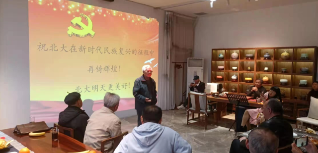 大连校友会党支部书记、79级地理系的由文斌师兄是北大校友爱乐合唱团的成员,他为大家演唱了《共和国之恋》,由师兄富有感染力的声音,饱含深情,展现出典雅的艺术气质。