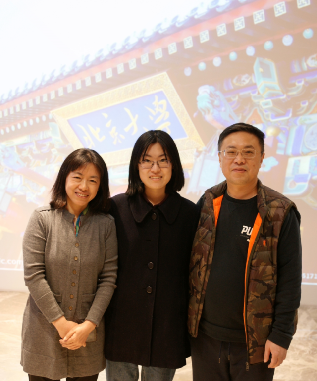 87级物理系张贞东、法律系申淑文夫妇和女儿一家三口都是北大人,与同是87级的李雪梅为参会的校友准备了精美的伴手礼。