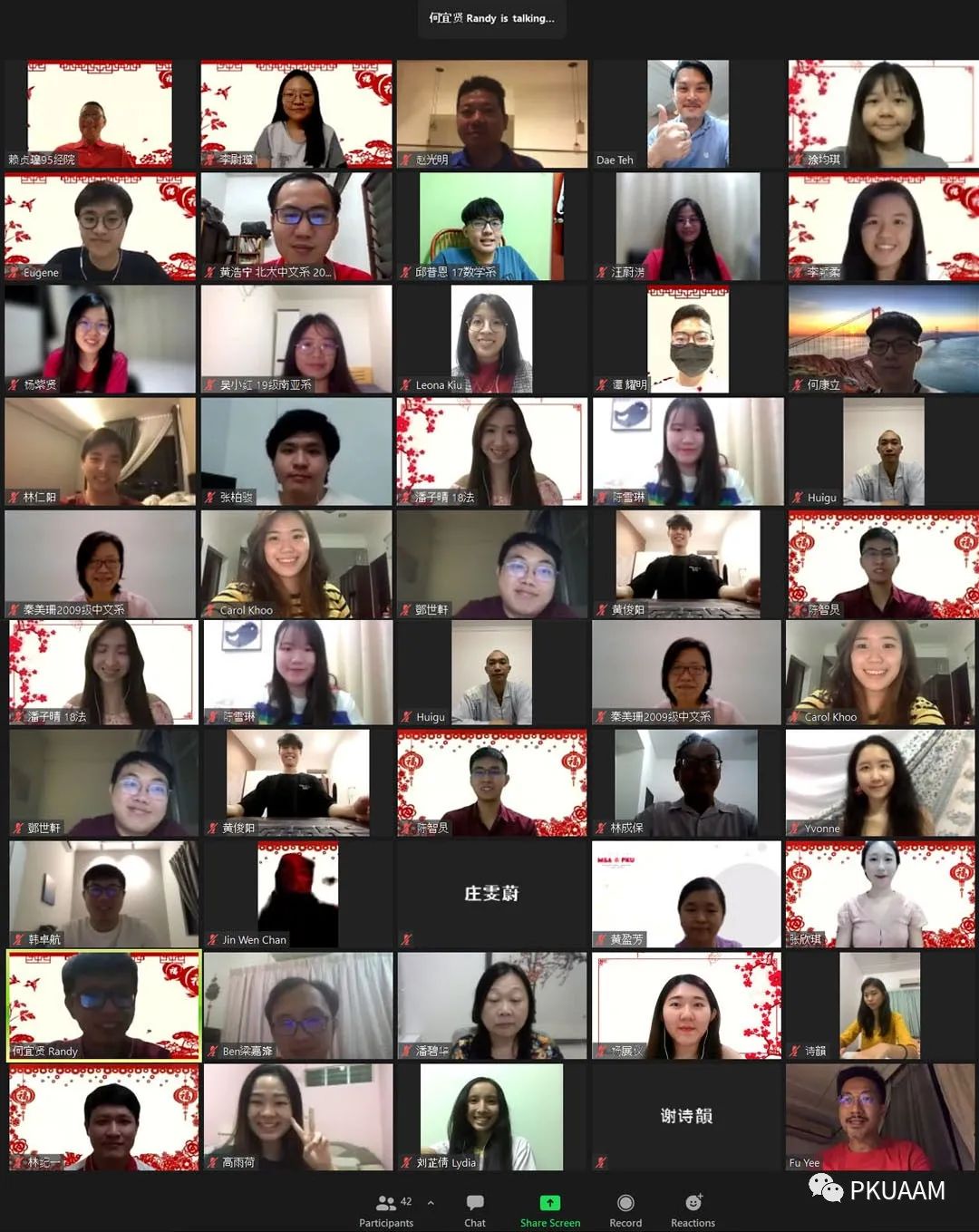 2021年2月20日,北京大学马来西亚校友会和北京大学马来西亚留学生会联合举办2021“牛气冲天,齐过新年”线上新春晚会。五十余名在籍生、校友以及北大之友参与。本次新春活动首次采取线上的方式,让身处各地的北大人能够参与其中。
