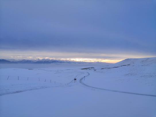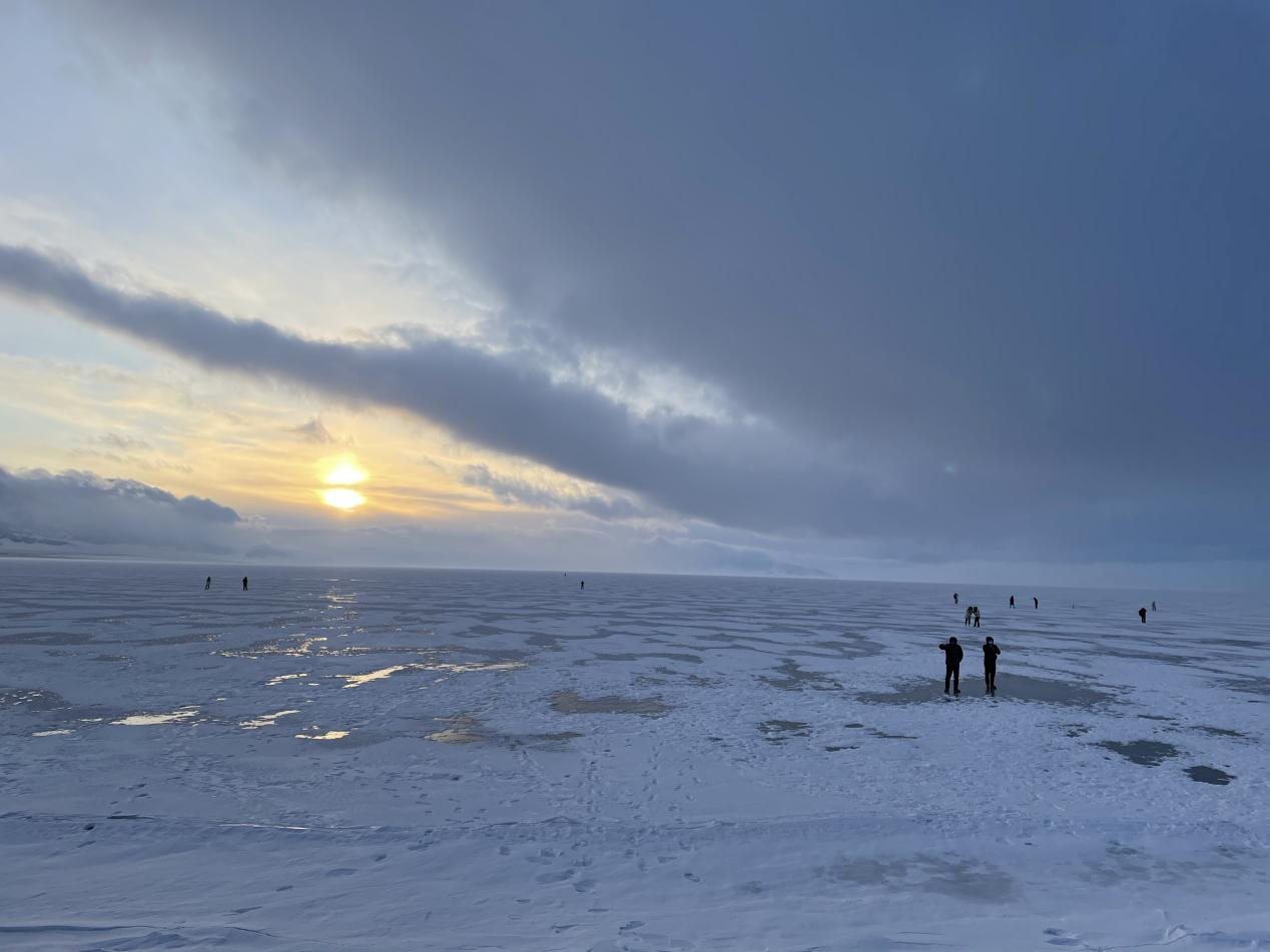 热情好客的伊犁校友们,首先带领援疆校友品尝了当地美食。饭后,伊犁校友驱车载着一行人沿着连霍高速,经过亚洲第一高桥“果子沟大桥”,穿越白雪覆盖的西天山,来到了赛里木湖。冬日里的赛里木湖银装素裹,雪涌冰凝,美不胜收。湖面上寒风凌冽,但挡不住校友们见到空灵天地的激动之情。