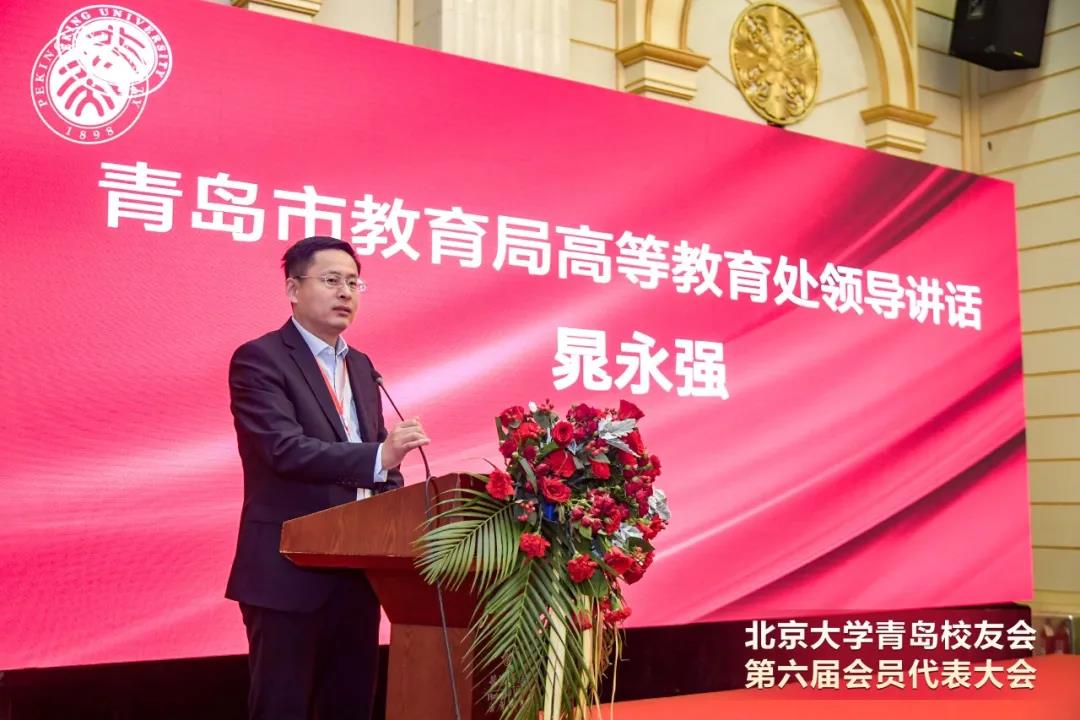 青岛市教育局高教处处长晁永强代表市教育局祝贺大会召开。他希望青岛校友会新班子在第五届理事会的基础上,再接再厉,将服务的理念和奋斗的精神,传承好、发扬好,握紧“接力棒”,跑好“新一程”。更广泛地联系、团结校友,关心并支持青年校友们的成长和发展;发挥桥梁和纽带作用,努力促进青岛各项事业的发展。