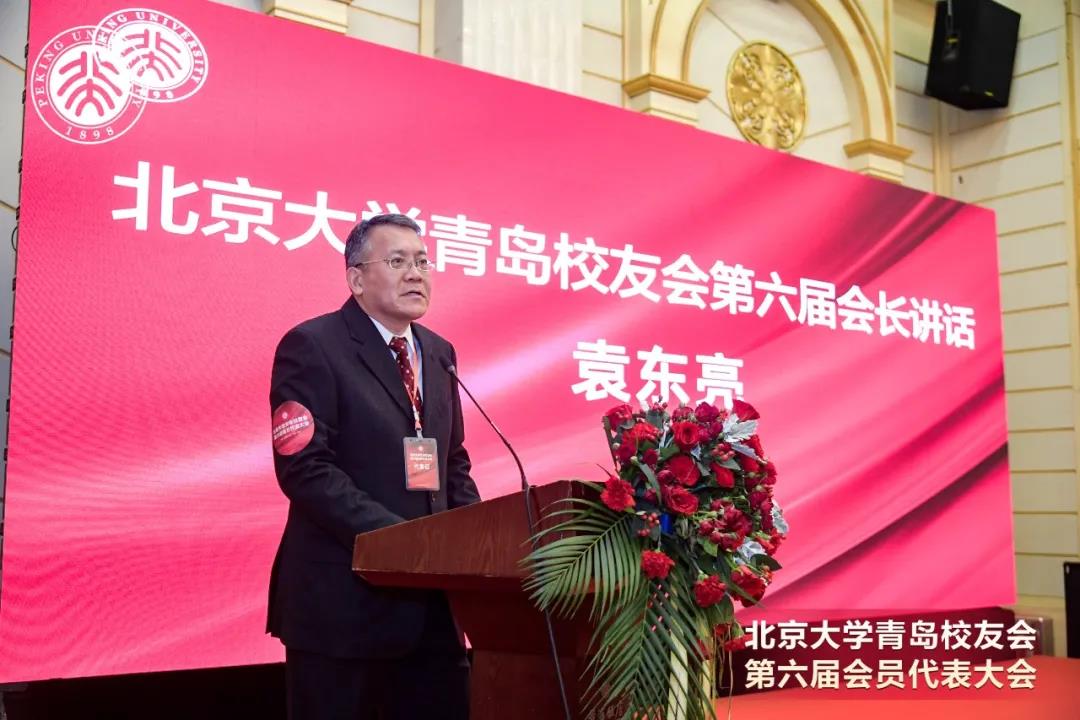 袁东亮发表讲话。他表示,当选新一届青岛校友会会长深感责任重大。青岛校友会的宗旨是广交朋友、服务校友。母校是大家的精神源泉,校友会肩负着提高母校声誉的职责。新一届理事会将严格遵守校友会章程,以凝聚校友、服务校友为核心,加强校友之间、校友与母校之间的沟通联系。同时抓住未来青岛市与北京大学扩大战略合作的机遇,努力为年轻校友提供事业成长的平台,增强校友会的联谊功能和吸引程度。除此之外,他还指出,欢迎热心校友积极参加活动并建言建策,共同努力把校友会工作干好。