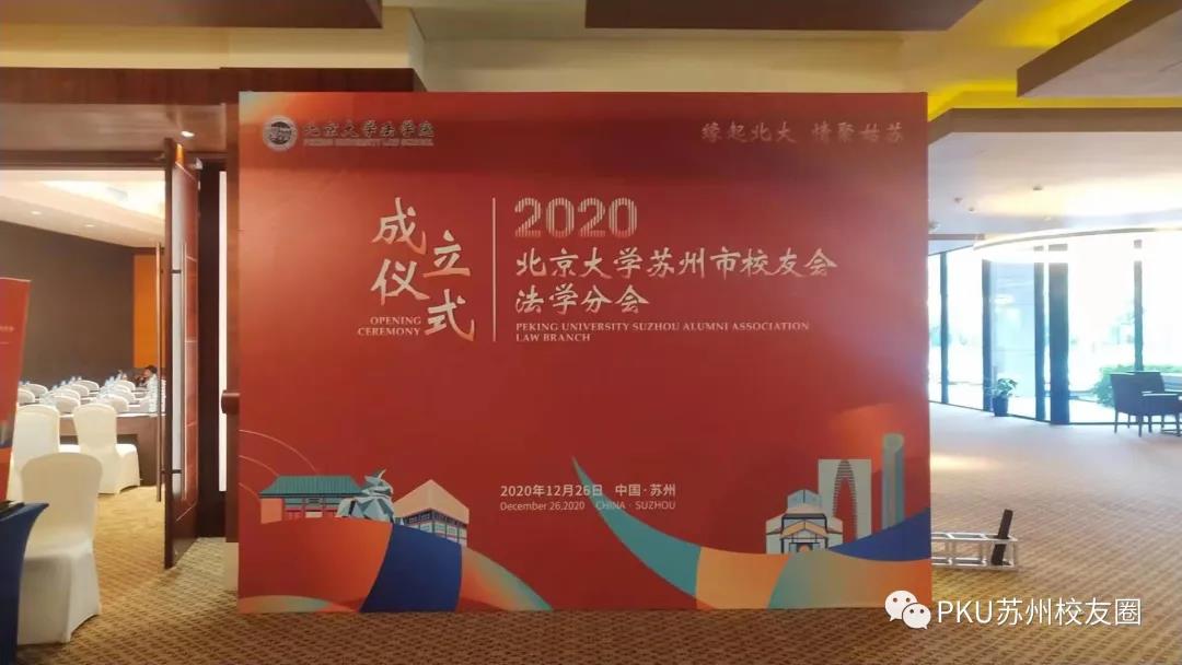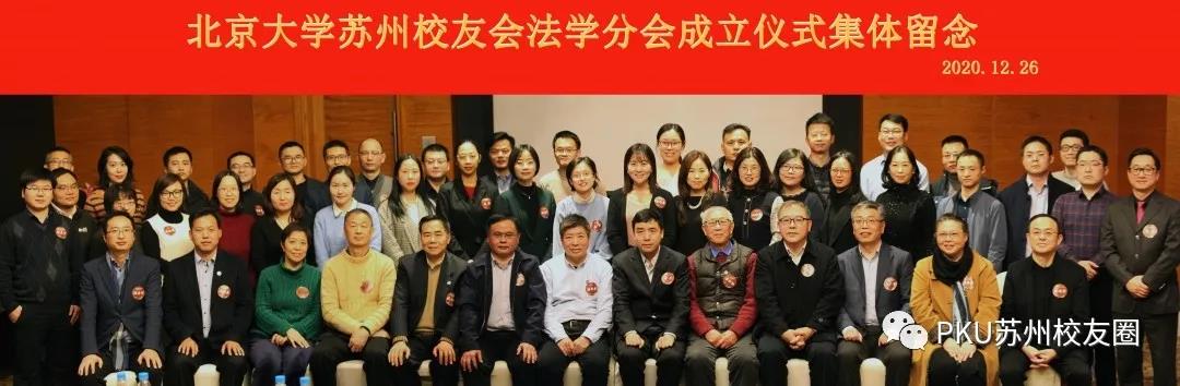 2020年12月26日下午,北京大学苏州校友会法学分会成立大会在苏州金鸡湖凯宾斯基大酒店顺利举行。北京大学法学院副院长薛军、校友工作办公室副主任鲁昕鑫、国内合作办副主任贾薇薇,北京大学南京校友会法学分会顾问马思萍、会长王广军、副秘书长盛星宇,北京大学上海校友会法学分会秘书长华斌,北京大学苏州校友会副会长谈工皎、副会长鲍昭大、副会长兼秘书长邵宏伟以及李幼勤(61级本科)、谢思敏(77级本科)等60余位在苏州工作和生活的校友及嘉宾出席成立仪式。大会由唐海燕校友(05硕)主持。